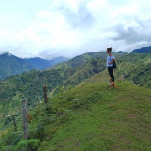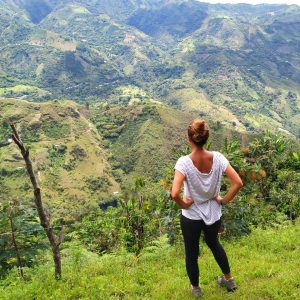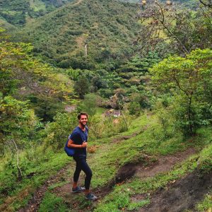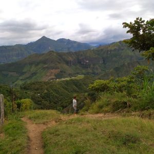 Y nuestra forma de disfrute fue, de entre todas las opciones, la más salvaje, subir la tremenda cuesta del alto del Aguacate que lleva hasta el yacimiento de más altitud. Un empinadísimo camino que se abre paso entre cultivos de café y banano, casi vertical y exasperante, que parece no tener fin hasta que uno llega a la cresta de la montaña y puede apreciar los diferentes valles y poblaciones a lado y lado.