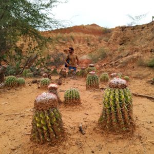 Llegamos a la capital de la región del Huila, Neiva, una ciudad que no tiene mucho más allá de una insoportable humedad y una correcta estación de autobuses, desde donde conseguimos que una furgoneta nos acercara a Villavieja, un pueblo pueblo, con sus mototaxis, su parque (plaza) central como núcleo total y sus habitantes sobrellevando el calor y los mosquitos a la sombra de cualquier árbol, alero, tejadillo o cactus. Allí empezaba el desierto.
