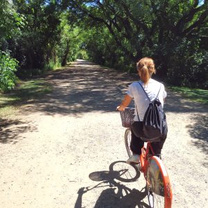 Al día siguiente y dado que el jet lag no aparecía por ningún lado, alquilamos unas bicis para recorrer la ciudad, muy a pesar de una zona noble de nuestro cuerpo que nos lo recordaría durante días. El paseo por la reserva ecológica que da a la desembocadura del Río de la Plata es tranquilo y muy agradable, aunque el sol te abrase la nuca y los animalicos, en general más listos que los humanos, descansen en paz al borde de una ciudad con tráfico difícil, con lo cual no ves ni media lagartija, aunque se agradece el remanso de paz entre tanto hormigón.