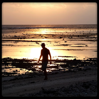 Cenábamos todas las noches en un mercadito nocturno con muchos puestos exhibiendo su pesca del día, donde tal cual señalas un pescado te lo cocinan a la brasa y dejas que nade en tu estómago. Y entre los sabrosos pescados nos encontramos con Phillipp, un alemán que conocimos en el aeropuerto de KL y al que le gusta la fiesta más que a un tonto un lápiz. Él y su inseparable cerveza Bintang se unieron a nosotros lo que quedaba de Gili. Con él vimos la puesta de sol más preclara en todo el viaje, un enorme sol naranja cayendo veloz en el mar como una gota más.