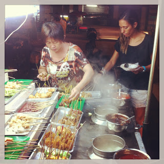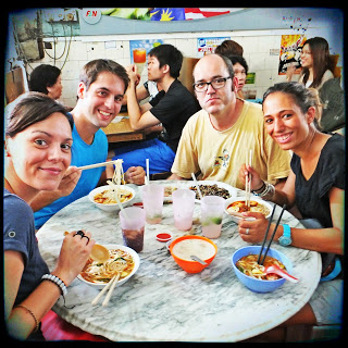 Nos alojamos en Love Lane, zona backpacker por excelencia, cuyo curioso nombre es debido a que era el lugar favorito de los colonos europeos para encontrarse con sus amantes. Una tarde de lluvia estábamos tomando un té en el salón del hostel cuando oímos una voz familiar… «75 ringitts por éste zulo? Serás mamón, malayo?» No puede ser, son ellos! Noeli y Rogelio, nuestros amigotes de Filipinas que habían estado viajando por Borneo reaparecían en escena a lo grande, empapados, con hambre y ganas de guerra!! Fue un gran reencuentro, pasamos los dos días siguientes poniéndonos al día entre bocados de arroz aglutinado con pollo y noodles humeantes.