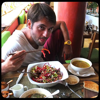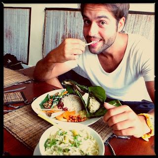 Definitivamente Ubud es una mezcla perfecta entre cultura, cuerpo y naturaleza. No sabemos si esta es la razón por la que allí se apuesta por lo vegetariano, por lo orgánico y por el culto a cuerpo y mente con muchos centros de yoga y pilates. Nosotros que somos claramente carnívoros y nos tienta más la fritanga que el apio, no creímos que este tipo de cosas fueran a convencernos. Pero fue probar una buena ensalada de remolacha y semillas y unos tés de jengibre y saber que queríamos más. Nos decidimos a ir probando diferentes vegetarianos y realmente le encontramos la onda, de hecho en pleno éxtasis de hortalizas y lemongrass nos apuntamos a una clase de yoga. Ooooohhhhmmmmmmm.
