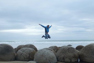 Aún alucinados y enrachados, decidimos ir corriendo a la playa de KoeKohe a ver los famosos Moerakis, unas piedras perfectamente redondas dispersas por la playa.