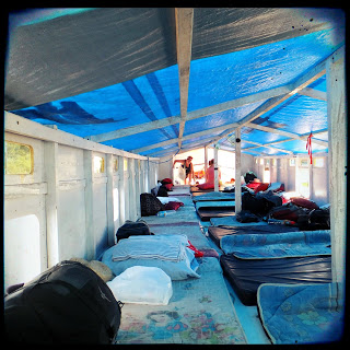 Dormíamos todos en cubierta resguardados de sol y lluvia por una lona, con los ojos apuntando directamente a las estrellas al caer el sol. Comodidad digamos que escasa, una colchoneta pocha en el suelo y mucho arroz blanco para comer y cenar, pero eso era lo de menos, estábamos surcando los mares de Indonesia! La idea era navegar toda la costa norte de Sumbawa hasta llegar al destino más preciado de Indonesia, con permiso de Bali… Komodo!!