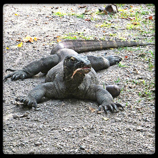 Poner el pie en la isla te obliga a estar alerta de que no te aparezca ningún bicho a menos de 20 metros a la redonda, aunque la verdad es que vimos muy poquitos y prácticamente inofensivos. En su hábitat natural vimos sólamente tres, de movimientos rápidos, gigantescos y con cara de muy mala gaita. Hasta hace muy poco se pensaba que su saliva era tan tóxica que un mordisco de dragón de Komodo provocaba tal septicemia que derivaba en muerte segura y posterior depredación por parte de tan cariñosos reptiles. Los ultimísimos estudios han revelado que no, que su saliva está en perfectas condiciones y que básicamente cazan como pueden, lo que si es cierto es que donde ponen el ojo ponen la garra. Mejor ni acercarse.