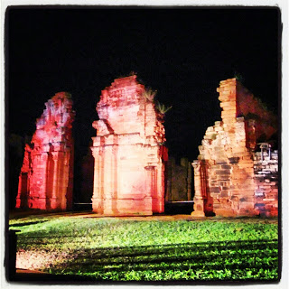 Siempre hacia Salta, recalamos en el epicentro de las misiones jesuíticas, San Ignacio de Miní. En este tranquilísimo pueblo, tan tranquilo que roza la sosez, se conservan perfectamente los restos arqueológicos de las misiones del siglo XVII. La historia es curiosa, básicamente llegaron a la zona unos pocos hermanos jesuitas que con muy buen hacer e infinita paciencia se ganaron la confianza de los indígenas guaraníes, sin hablar su lengua los culturizaron y sin conocer sus costumbres les enseñaron artesanía y agricultura. Llegamos en plena Semana Santa, para bien o para mal. Para bien porque al llegar nos encontramos con la misa más importante del año celebrada en medio de los restos arqueológicos y de noche, o sea que los pudimos visitar gratis, y en pleno fervor cristiano aprovechar para sacarnos fotos. Tal cual como indios guaraníes todavía por culturizar. Para mal porque fue de un pelo que no dormimos en la calle, también como indios guaraníes ya culturizados, porque no quedaba ni una plaza libre en todo el pueblito. Al final encontramos un hostel muy económico llamado El Jesuita, donde al día siguiente nos culturizaron gratis y prestaron dos bicis para ir a recorrer el lugar. A cuarenta grados a la sombra no llegamos muy lejos, pero sí lo suficiente: nos adentramos en la selva paranaense para visitar una comunidad guaraní (indios indios) y poder conversar tranquilamente con su cacique, que descalzo y ataviado sólo con unos jeans y un collar de cuentas blancas al más puro estilo Sex and the Mission nos explicó sus costumbres y vida diaria. Matamos el sudoroso recorrido en bici conociendo la historia de Horacio Quiroga, un loco poeta loco por misiones y su loca selva. Passion for knowledge.