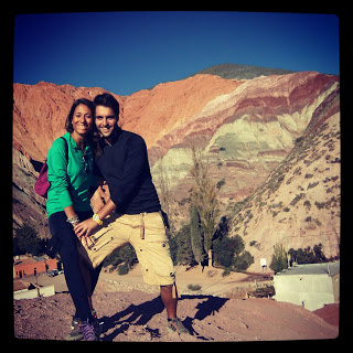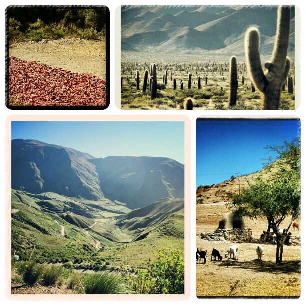 Saltamos hacia la zona de Jujuy y la Quebrada de Humauaca, todo valles multicolor, tanto por las rocas como por las telas de artesanía. Decidimos hacer noche en Purmamarca, a los pies del mítico cerro de los siete colores, aunque cada vez que lo miras y dependiendo del humor del sol le encuentras nuevos tonos, es como un círculo cromático con vida. En la habitación del hostel conocimos a Tefi y Yoco, dos chicas argentinas suuuuuper buena onda, que nos introdujeron en el maravilloso mundo del Fernet Branca y las peñas entre amigos. Es decir, que esa misma noche acabamos bebiendo entre los cuatro 4 litros literales de fernet con cola, bebida chocante con saborcito a hierba de la pradera pero viciosisima, tanto que acabamos TODOS bailando el baile típico de la región, ¡¡la Chacarera!! con su correspondiente zapateo, muchas risas, mucho ridículo, y por suerte, cero documentos gráficos.