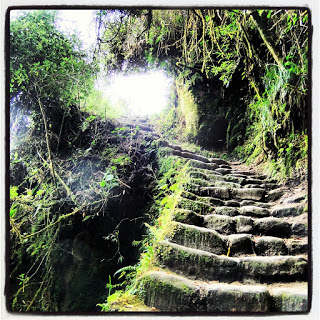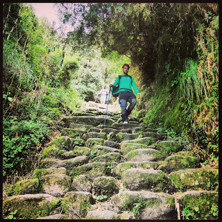 Y por fin llega el día esperado, nos levantamos nerviositos como niños en el día de reyes, pero a las 3:00 a.m. Quedaba solamente una horita de camino por la selva en pleno amanecer. Lo veíamos tan cerca, que todos, sin excepción imprimimos un ritmo apoteósico para robarle unos minutos más de su atención a la ciudad sagrada. Ya nadie se acordaba del cansancio ni de la cojonuda hora a la que nos despertamos, sólo trotábamos como poseídos intentando ver más allá del siguiente recodo. Tardamos poquito en alcanzar la Puerta del Sol, IntiPunku para los amigos, que básicamente son dos columnas de piedra de 2 metros de altura, como tantas otras hay en el mundo, sólo que al cruzarlas… Tienes el gran privilegio de observar La Ciudad Sagrada de Machu Picchu, desde la distancia, como espiándola, como si realmente la estuvieras descubriendo tú mismo en ese preciso momento. Y en eso nos convertimos todos ese día, en descubridores, de la historia, de la belleza y de la amistad.