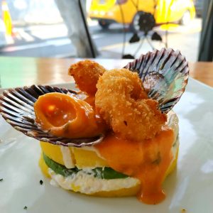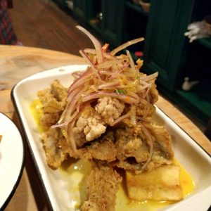 Tras liberar nuestras espaldas y dejar todos los trastos en un apartamento precioso y céntrico, nos dirigimos directamente a la taberna Canta Rana a probar una por una todas las recomendaciones que nos habían hecho propios y extraños. Ceviche apaltado con leche de Tigre. Gallina de piel.