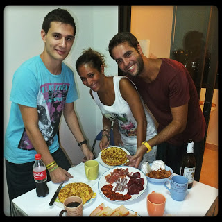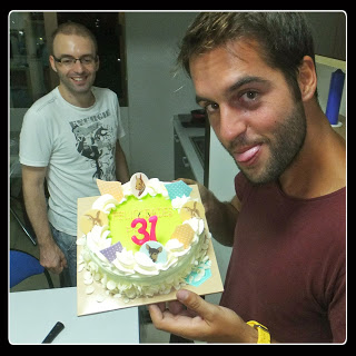Y con ese buenrollismo autoinducido celebramos mi cumpleaños de forma inmejorable, con lo que más nos puede recordar a casa y la familia: Juanmi traía la mochila llena de choricito, jamoncito, lomo y demás spanish delicatessen, y Gon, al que nunca agradeceré lo suficiente su amor y cariño al acogernos en su propia casa, nos sorprendió a todos currándose dos tortillas de patatas de concurso y una tarta dedicada que aún me emociona cuando la recuerdo. Que venga ya ese futuro, por favor! Pero sin prisa que ahora estoy disfrutando del mejor regalo de mi cumple, el presente.