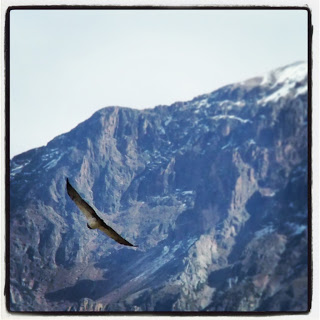 Uno de los imprescindibles de esta zona (desde este momento empezamos a cuestionarnos la rotundidad con la que se afirman estas cosas) es el cañón del Colca, uno de los más profundos del mundo con sus cóndores, sus alpacas y sus guiris, única especie fuera de peligro de extinción. Hay dos formas de visitarlo, la primera es bajar hasta abajo del todo para después animadamente subirlo de nuevo. Esta opción la desestimamos rápidamente por que aún se nos aparecían los escalones incas cuando cerrábamos los ojos. La otra opción es más de octogenarios pero también finiquitas la maravillosa experiencia en un día, y eso es de agradecer…Te recogen en un micro, te suben a lo alto del cañón para que veas como cuatro cóndores despistados huyen de los turistas y después de un rato te vas. Y para esto sólo tardas 13 horas. Así de rapidito. Así de infernal. La turistada del siglo.