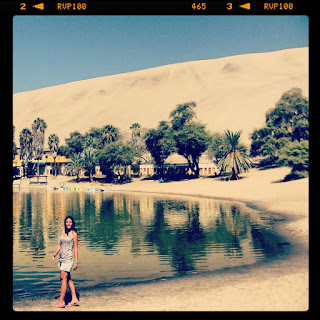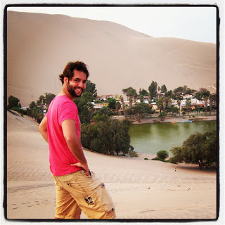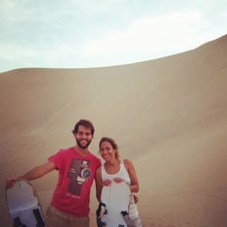 Tras unos días en Arequipa fuimos a conocer el desierto peruano y llegamos a Ica, un pueblo que ni olimos ya que fuimos derechitos a contemplar su principal interés, el espejismo hecho realidad de ver un verdadero oasis en medio de un mar de dunas. La mejor forma de ver estas dunas es montado en un bicho llamado buggie. Como tantas otras veces, ni idea de qué iba lo del buggie y pensábamos que mientras duraba el paseo podías ir admirando la belleza de las dunas mientras hacías fotos o simplemente te sujetabas el sombrero con una mano, pero nada que ver… Aun sueño por las noches que muero siete veces a bordo de un buggie. Justo al arrancar y después de un acelerón seguido de un derrape por la arena, pensamos «Mierda!, nos ha tocao el conductor más quinqui de Ica». Esto es lo que ocurre cuando te apuntas a actividades cuyo nombre no has oído en tu vida, aunque si nos hubieran dicho Dragon Khan pues algo habríamos intuido. Básicamente consiste en ir por las dunas a toda leche sin levantar el pie del acelerador intentando volar literalmente al llegar a lo alto de cada duna. Fue espectacular, un auténtico rallie por el desierto! Obviamente no hay fotos, a ver quien era el listo que se soltaba.