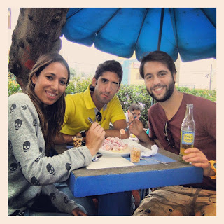 Antes de partir de Lima decidimos cerrar un círculo abierto tres meses atrás, y esta vez sí que nos lo propusimos, quedamos para comer con Mel y André, nuestros pursuivants alemanes. Repetimos con ellos el ceviche que nos había enseñado Alejandro, y lo repetiríamos cada día de nuestras vidas si viviéramos en Lima. Y ésta sí que fue la última etapa del tour, la última despedida en Sudamérica, aunque habiendo tropezado con ellos tantas veces en tan poco en un territorio tan amplio, sin duda nos volveremos a encontrar pronto en este pequeño mundo.