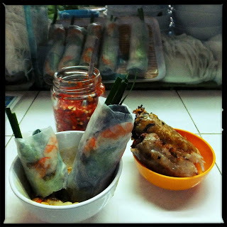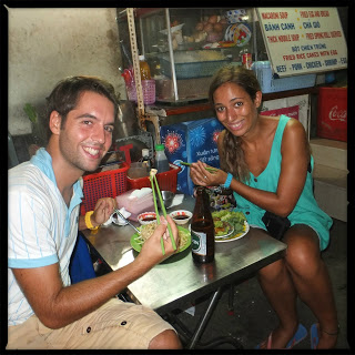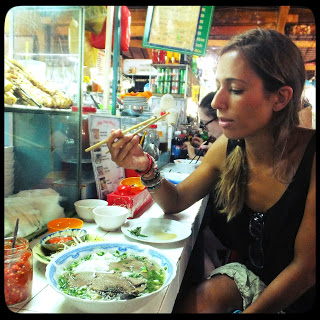 Conseguimos llegar al mercando Ben Thang, en el centro, medio para turistas medio para locales. Allí probamos nuestro primer Phó Bó, un caldo de carne con noodles que condimentan hasta la saciedad con cilantro y mil matojos de verduras que a ellos les encantan y a nosotros nos horrorizaron. Era como comer geranios en sopa. Al pedir rollitos de primavera pensamos que era una apuesta segura, pero su obsesión por lo verde les impide prepararlos sin aderezos ni ramilletes. La serpiente y los escorpiones fritos los dejamos para otra ocasión.