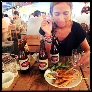 Al caer la noche en HCMC hay tanta vida como durante el día, los mercados cierran pero cientos de puestos de ropa y comida toman el relevo montando a su alrededor auténticos mercadillos nocturnos, la gente sale a la calle en tromba como si fueran a una manifestación para aprovechar las horas frescas del día y no queda ni un taburete de enanitos donde sentarse. Los vietnamitas adoran cenar y tomar cervezas con amigos en las terrazas, costumbre que nos encanta porque nos recuerda a ese país que ya se empieza a echar en falta de verdad. La ciudad es caótica pero también muy moderna y está llena de restaurantes y bares para la gente guapa de Saigón en los que pasamos muchas horas leyendo, hablando, riendo y degustando a sorbitos este nuevo mundo, siempre en Asia.