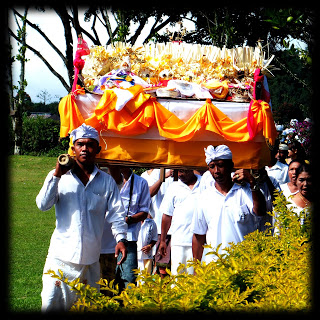 Los balineses dedicaban su día a día a perpetuar el estado de felicidad mental en el que se desarolla su vida y la de sus vecinos. Fueron bendecidos por todos los dioses hinduistas durante siglos, hasta el punto que en esta isla, igual de perdida que cualquier otra, se desarrolló una religión única en el mundo. Una religión tan generosa que si se conociera en el resto del mundo sería el fin de todo y de una vez por todas, el principio.