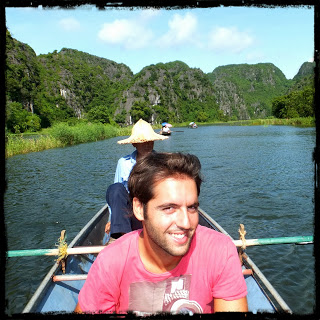 Decidimos parar en Ninh Binh para ir a visitar uno de los parajes naturales más agradables de Vietnam, Tam Coc, un río que atraviesa valles y rocas de belleza 10 en la escala de Stendhal, y que se puede recorrer en barquita. Claramente jarreando de aquella manera no iba ser todo lo idílico que nos imaginábamos al bajarnos de aquel bus. No teníamos muchos días para perder en Ninh Binh esperando el buen tiempo, así que al acostarnos decidimos que si al día siguiente el tiempo no había mejorado seguíamos ruta hacia Hanoi. A las 7 de la mañana ya estábamos desayunados y preparados y como a quien madruga no le mires el dentado (o algo así), el espíritu de Montesdeoca se apiadó de nosotros y con un sol radiante fuimos los primeros en alquilar una moto y salir pitando hacia Tam Coc. Y realmente debíamos serlo, porque dejamos la moto, tomamos un barquito conducido por un veterano que remaba muy profesionalmente con los pies, y no nos encontramos a nadie en todo el recorrido de ida.